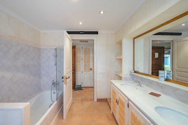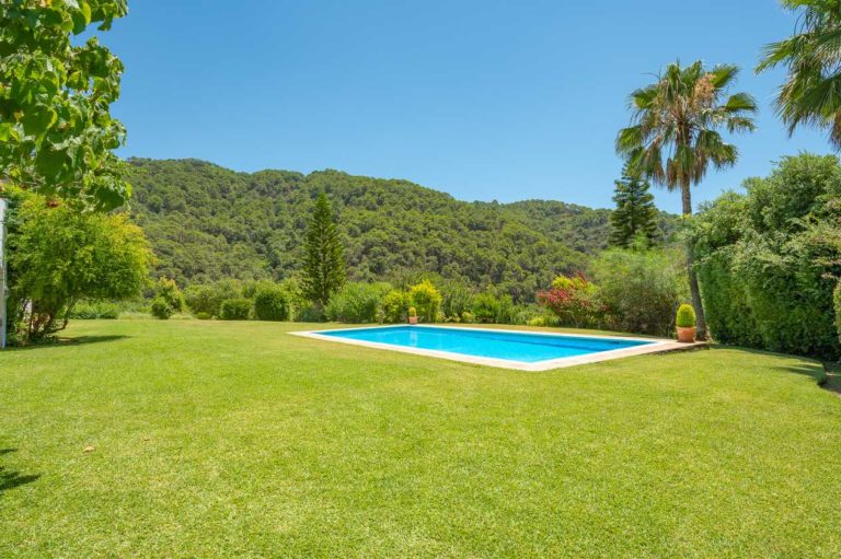 The villa is built around a central courtyard with trees, a swimming pool and water fountains that radiate tranquility with an elegant and country style.