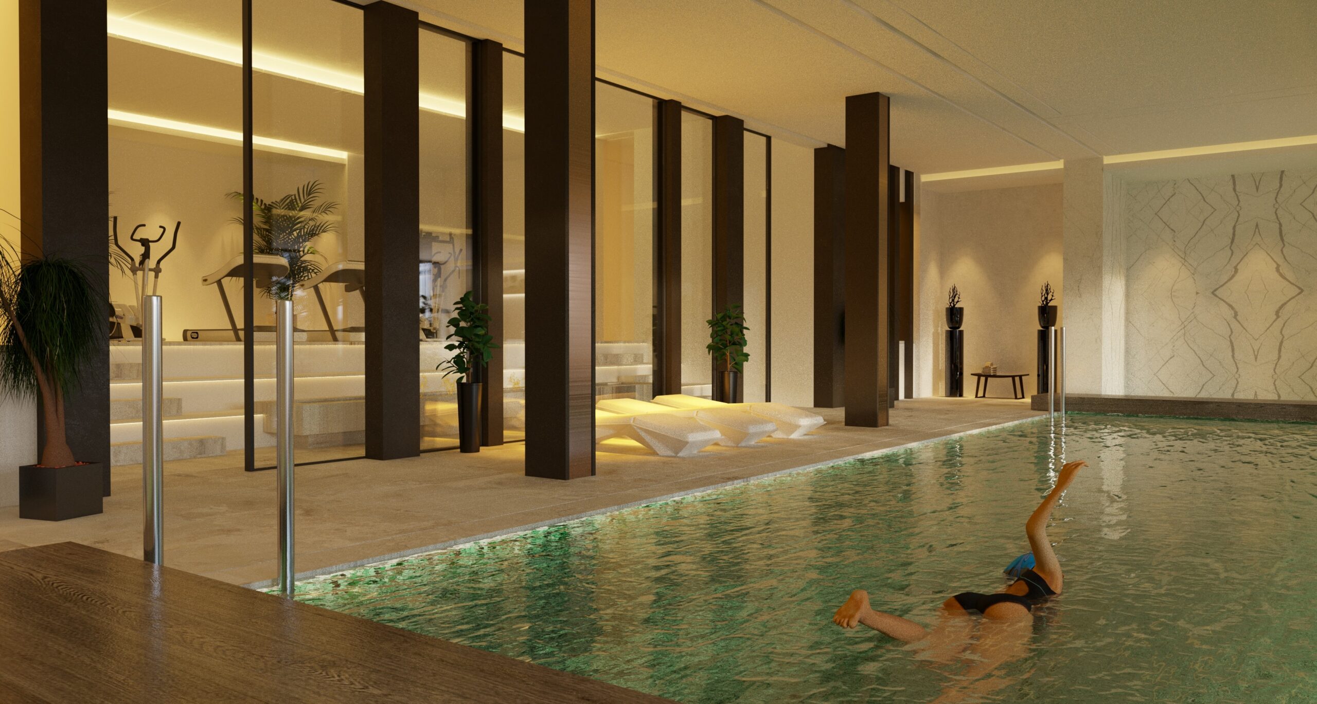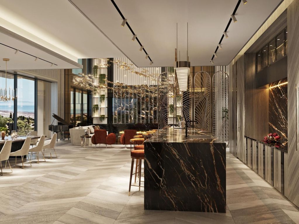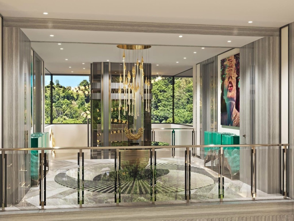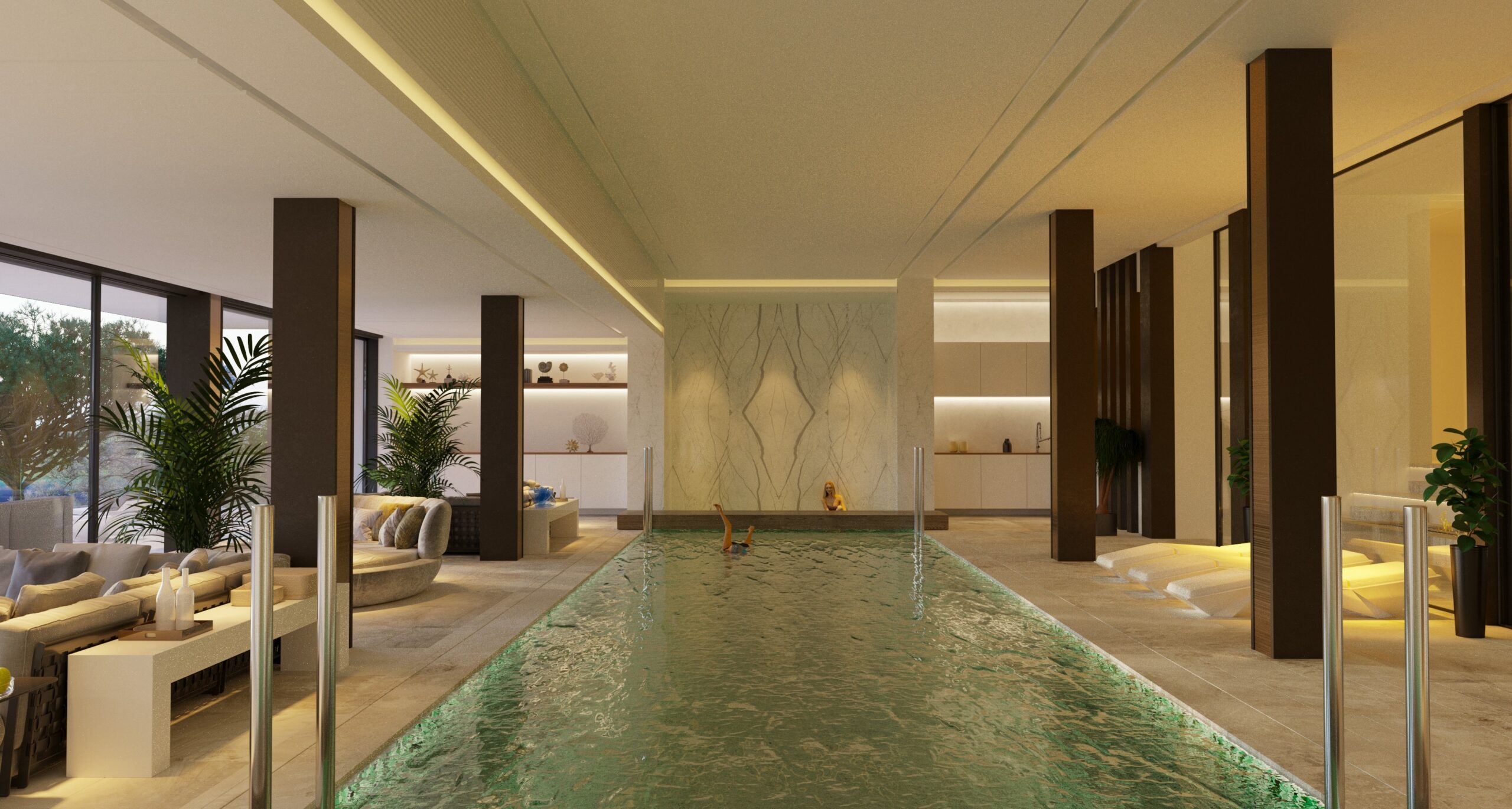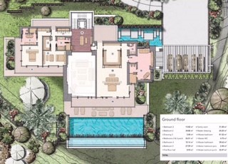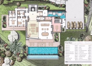 Distributed over three levels, the impressive design includes two swimming pools, one outdoor and one heated indoor, gym, steam room, sauna, a presidential-size master suite with vast walk-in closets, 6 luxurious bedrooms with en-suite bathrooms, guest toilet, several covered terraces and a large terrace with various entertainment areas.