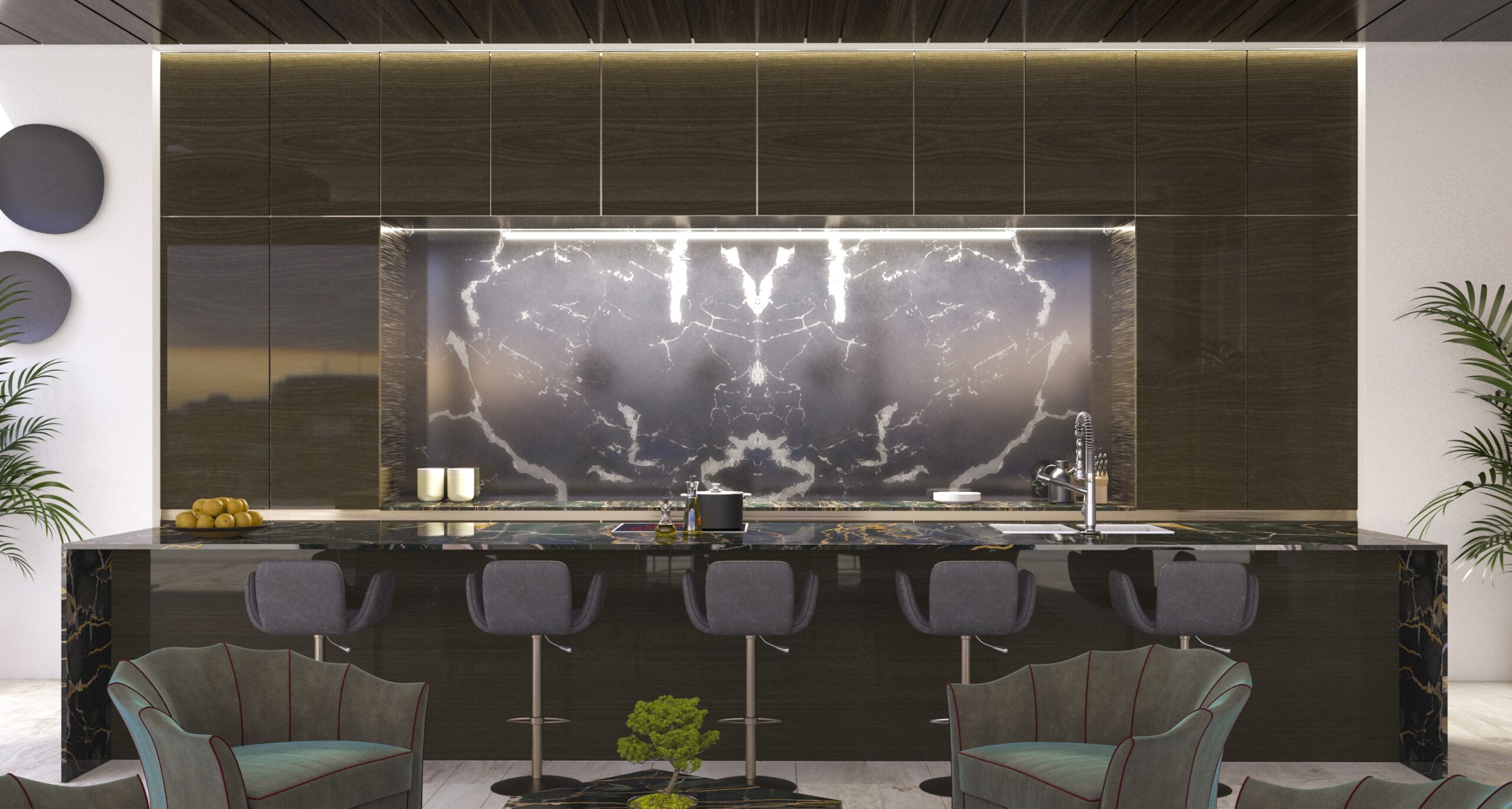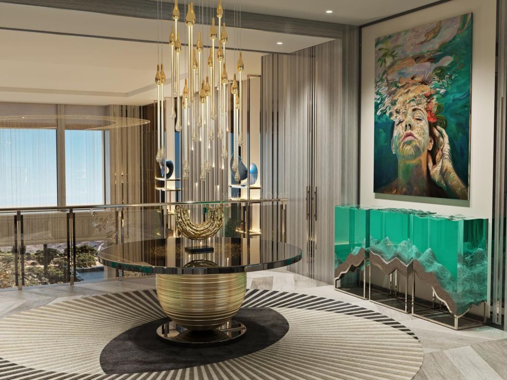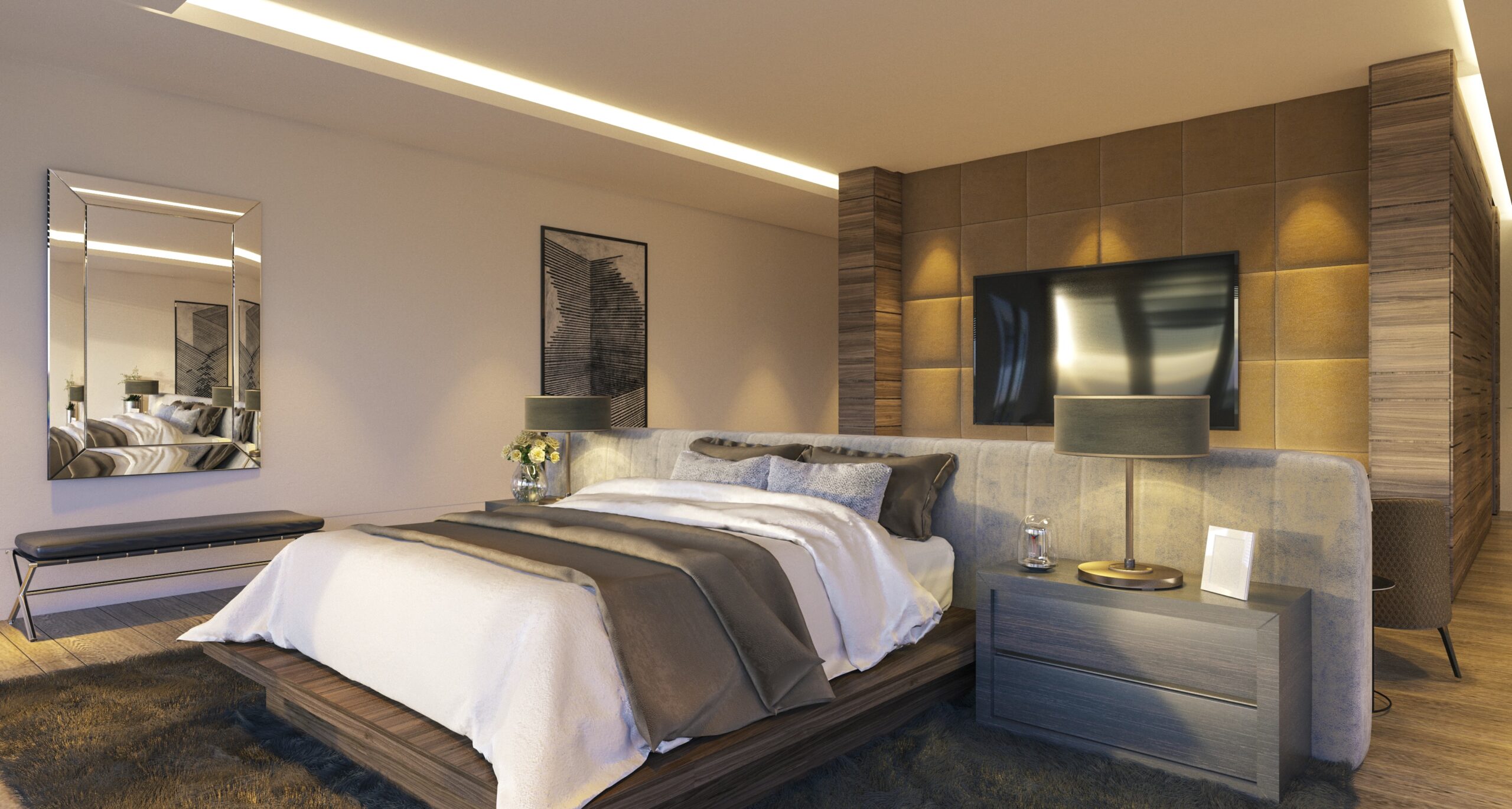 Distributed over three levels, the impressive design includes two swimming pools, one outdoor and one heated indoor, gym, steam room, sauna, a presidential-size master suite with vast walk-in closets, 6 luxurious bedrooms with en-suite bathrooms, guest toilet, several covered terraces and a large terrace with various entertainment areas.