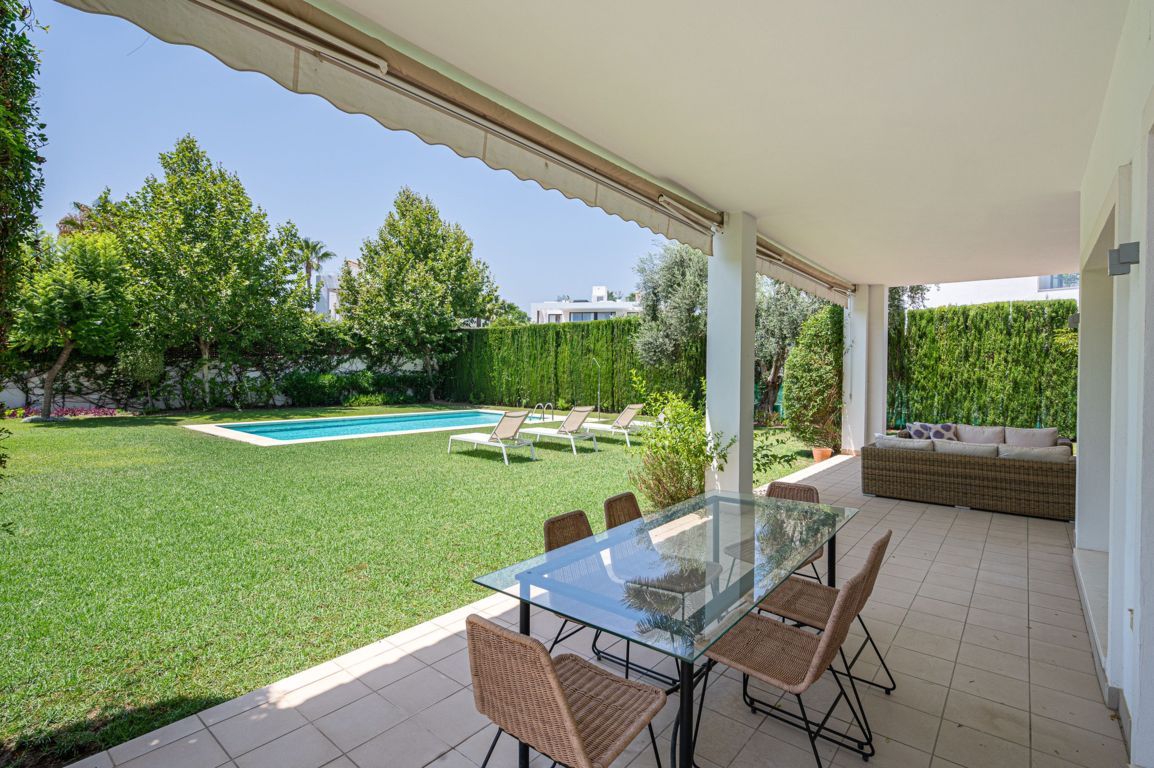 It has a spacious entrance hall, 1 a guest toilet, a large fully equipped kitchen, a very spacious open-plan living room with a dining area with access to the covered terrace, the pool and a magnificent well-maintained garden with a variety of flowers and tropical trees.