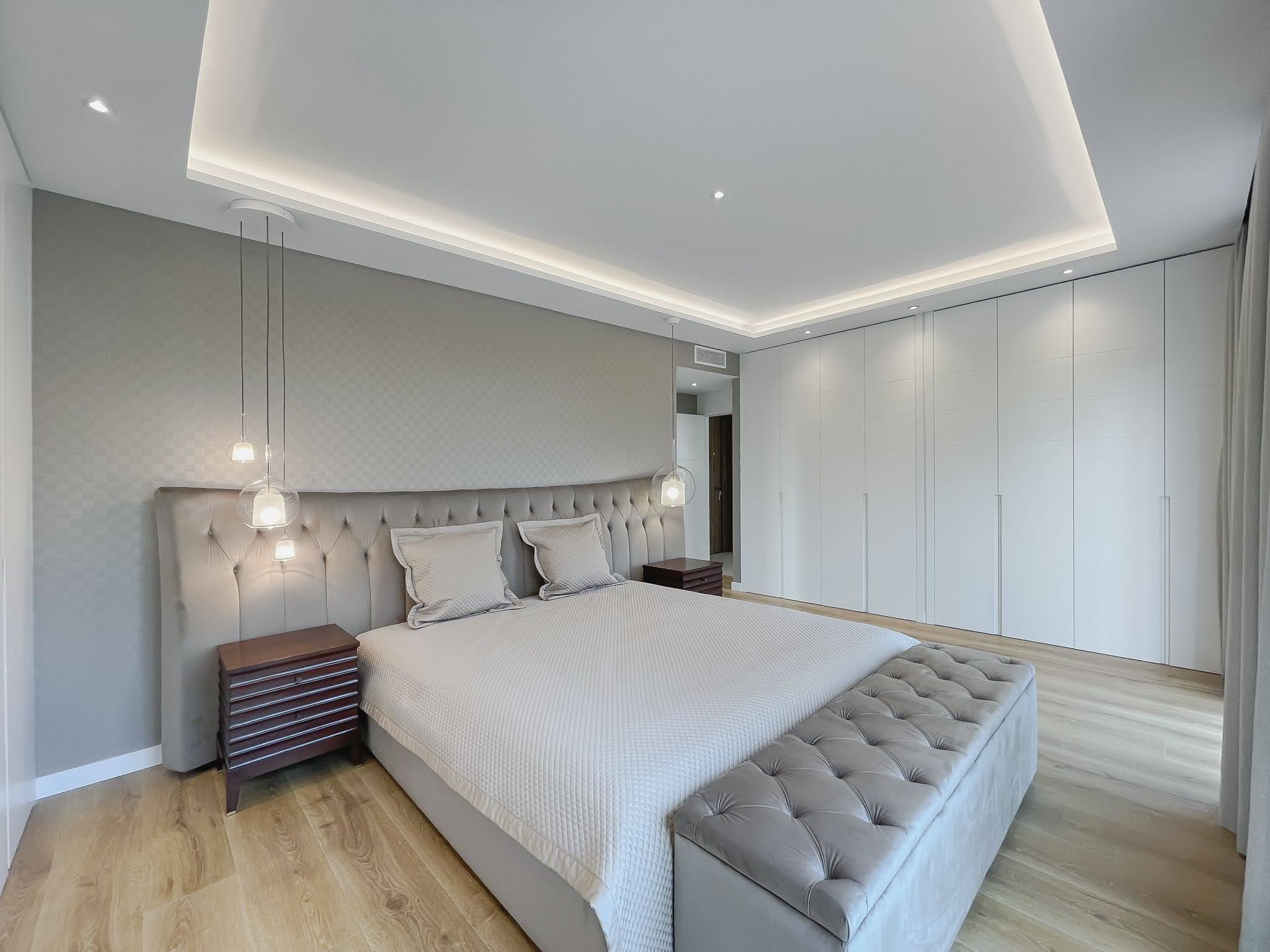The villa has a bright living-dining room with a fireplace, a fully equipped kitchen with a central island, 6 bedrooms with large dressing rooms, 6 en-suite bathrooms, a solarium with a Jacuzzi and a barbecue area.