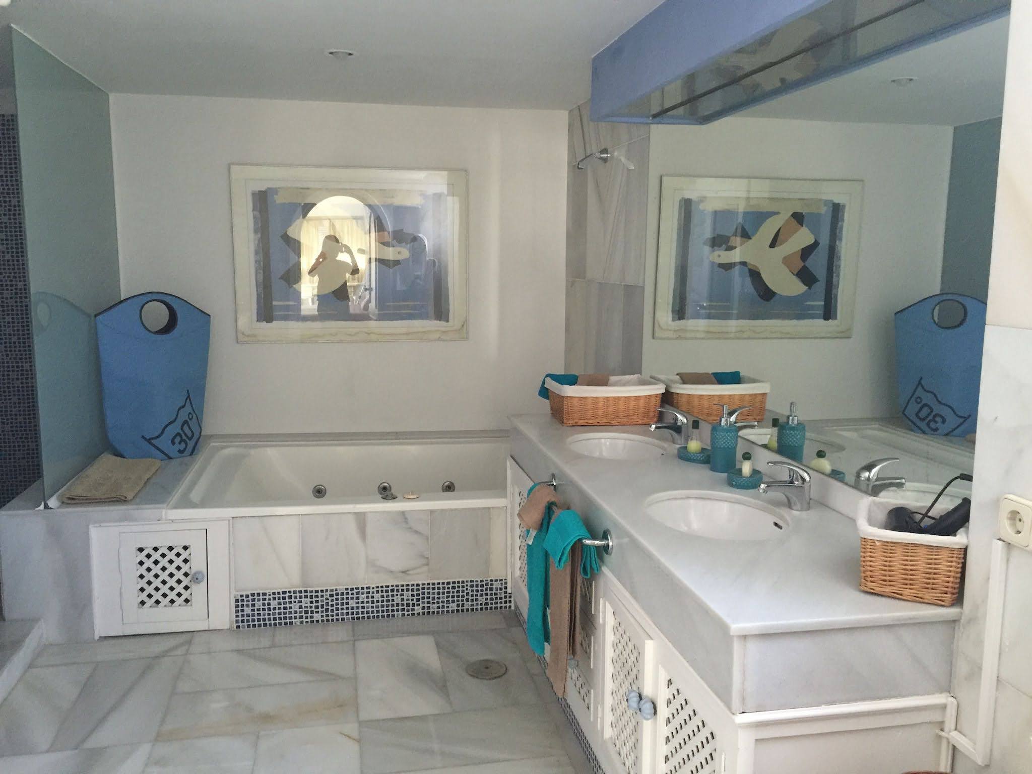 Cozy rustic and Mediterranean-style villa with a more than privileged location, in the heart of Nueva Andalucía, just 1 km from the José Banús Marina (an 8-10 minute walk). Its geographical position, surrounded by all kinds of services on foot and its 5 double bedrooms, the personalized one in an ideal home as an investment for its tourist exploitation with demonstrable high income or as a habitual single-family home. The house has 305 m2 inside, distributed over 3 main floors (ground floor, upper floor and basement/garage). The ground floor has a spacious and bright living-dining room, a modern kitchen with an island fully equipped with electrical appliances, a laundry room, a service bedroom with an en-suite bathroom and an outdoor area with a beautiful, well-maintained garden, a chill-out area, and a barbecue area. and private pool. On the upper floor there are 4 four double bedrooms, three complete bathrooms and two terraces. The master bedroom has an en-suite bathroom, jacuzzi, dressing room and terrace. ">
