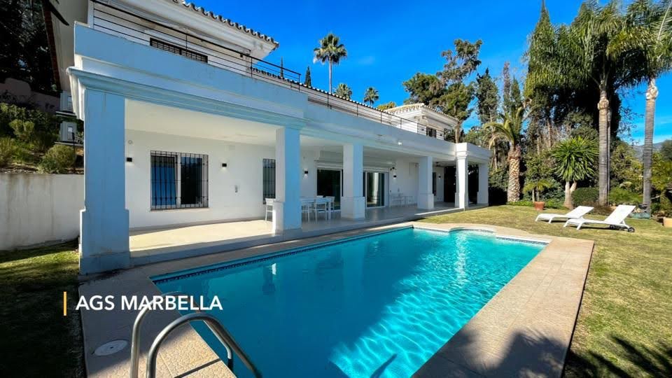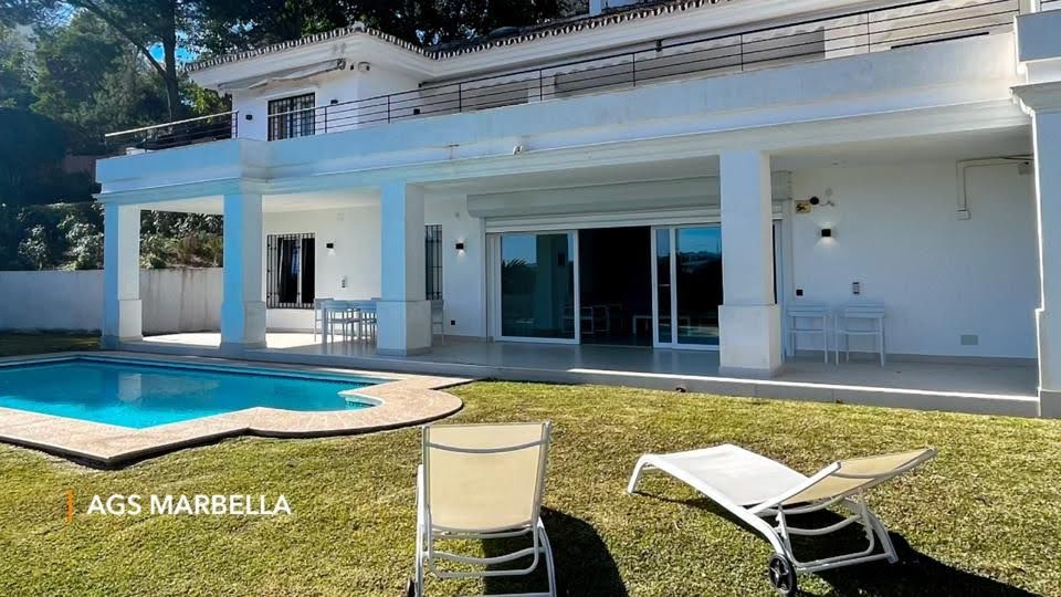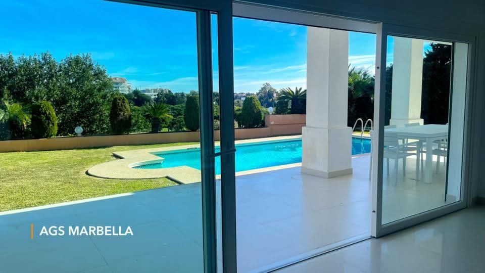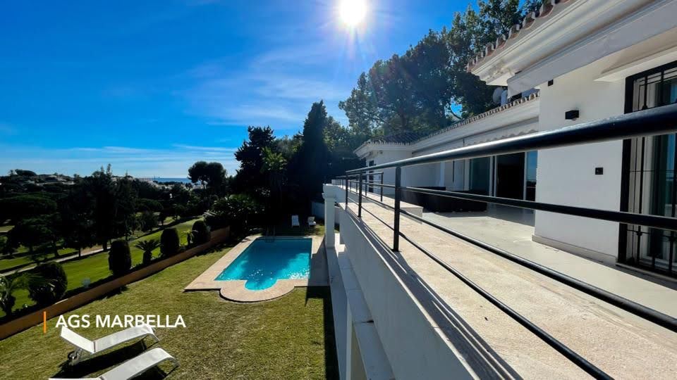 It has 2 floors. On the upper floor we find a spacious living room with a fireplace. Dining area and kitchenette, all in open space. It has a service area and laundry. On the first floor we find the master with an en-suite bathroom, both are connected to a large terrace of more than 100 meters with views of the pool and the golf courses. On the lower floor we have a second living room with kitchen and leisure area with billiards. In the lower part is the imposing pool with the gardens, this area is accessed through the house or, failing that, through the side of the Villa. Located in a privileged enclave where we can enjoy the sea and the beach that we have 500 meters away, as well as the wonderful golf tournaments. The villa is sold furnished, it has modern furniture, respecting the classic touch of the house. The house has 2 private parking spaces, included in the sale price. It is necessary to demonstrate solvency to carry out the visit, in the same way, if an agreement is reached on the purchase, you must prove the origin of the funds.