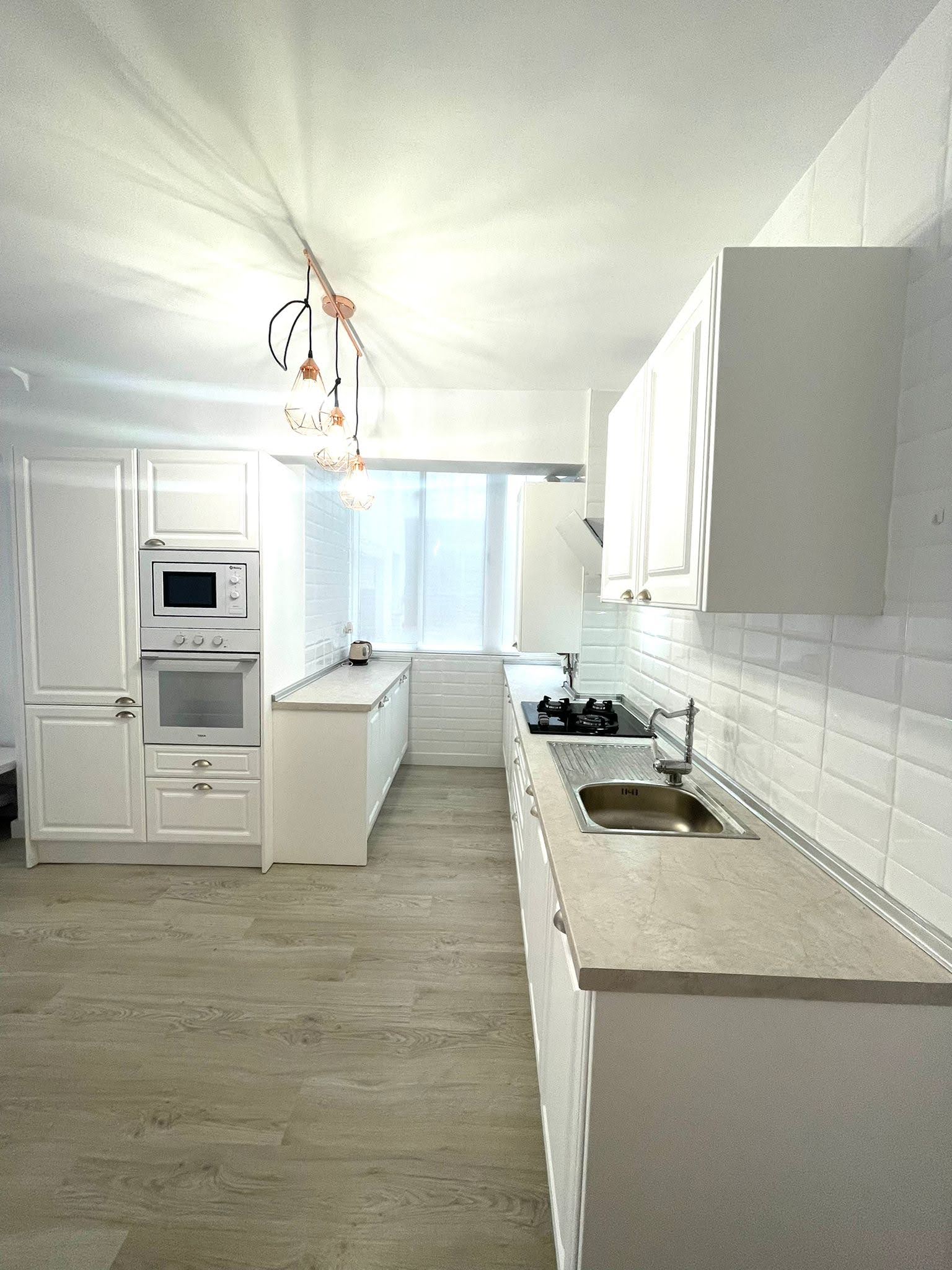 Consta de cocina abierta al espacio totalmente equipada con materiales de lujo (horno, frigorífico, microondas, lavavajillas, lavadora), salón comedor equipado con sofá cama, Smart TV, comedor, lámparas de diseño, tres dormitorios con armarios y colchones nuevos, un baño completo y una buena terraza de orientación sur muy soleada.
