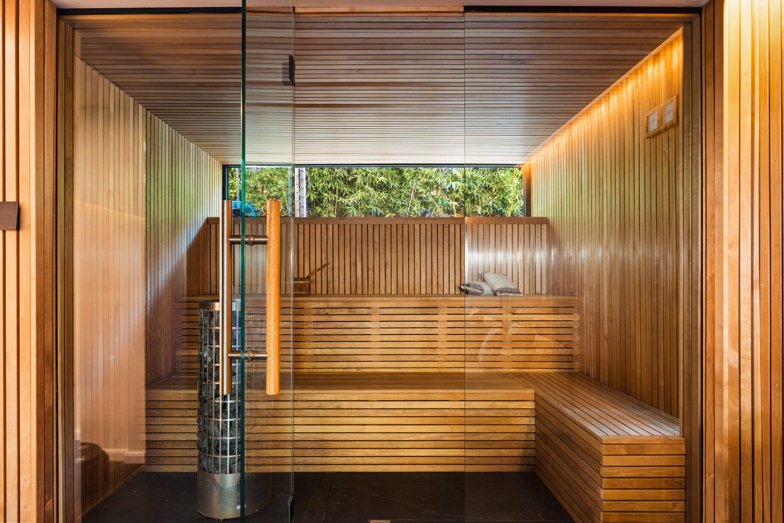 Entre las características adicionales se incluyen una oficina en casa, una planta de bienestar totalmente equipada con gimnasio, sauna y jacuzzi/piscina interior, así como una sala de cine con excelente aislamiento acústico. Un garaje privado cerrado con capacidad para un vehículo, complementado por una entrada privada con portón y espacio para hasta cuatro coches adicionales.