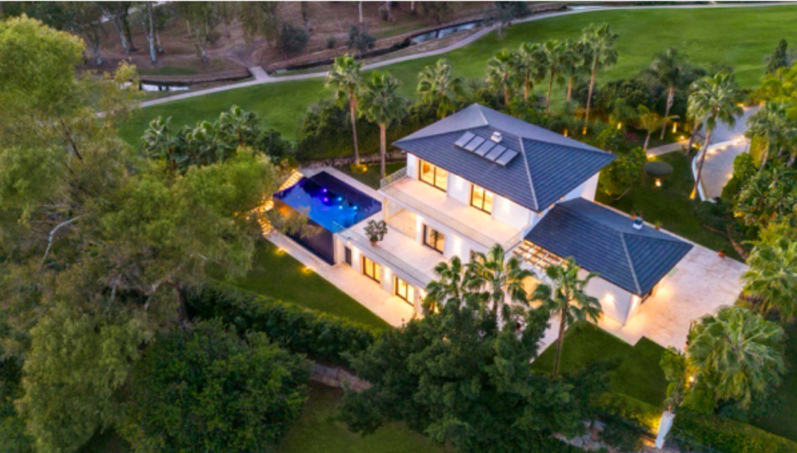 La villa cuenta con impresionantes vistas al Campo de f, Golf, al mar, a La Concha y al jardín tropical con más de 20 palmeras.