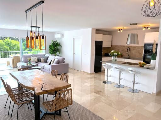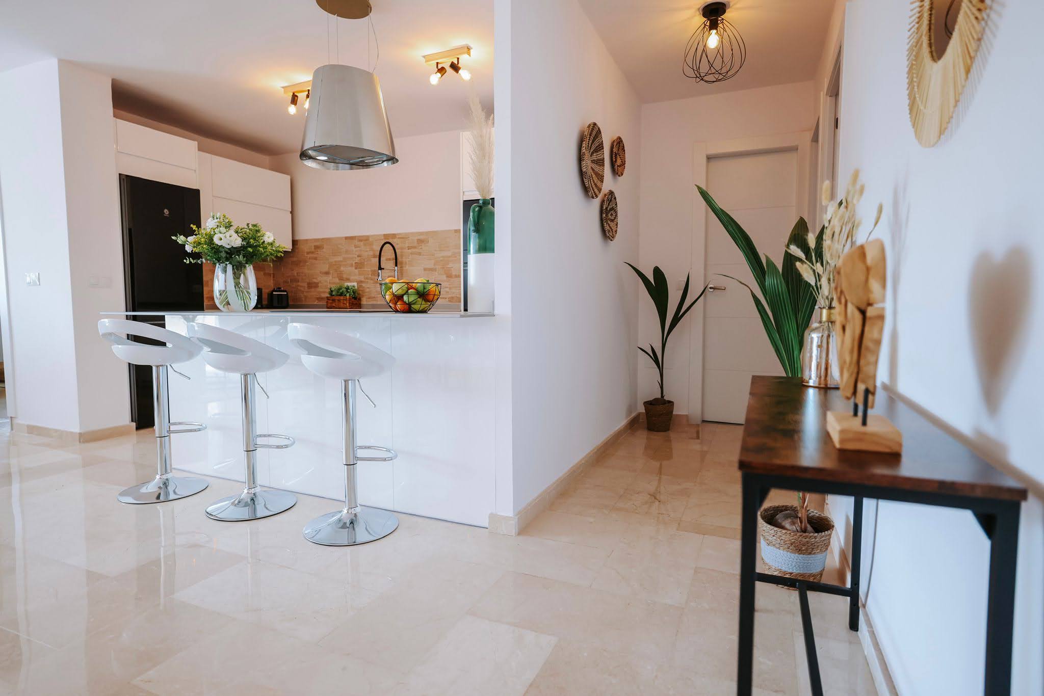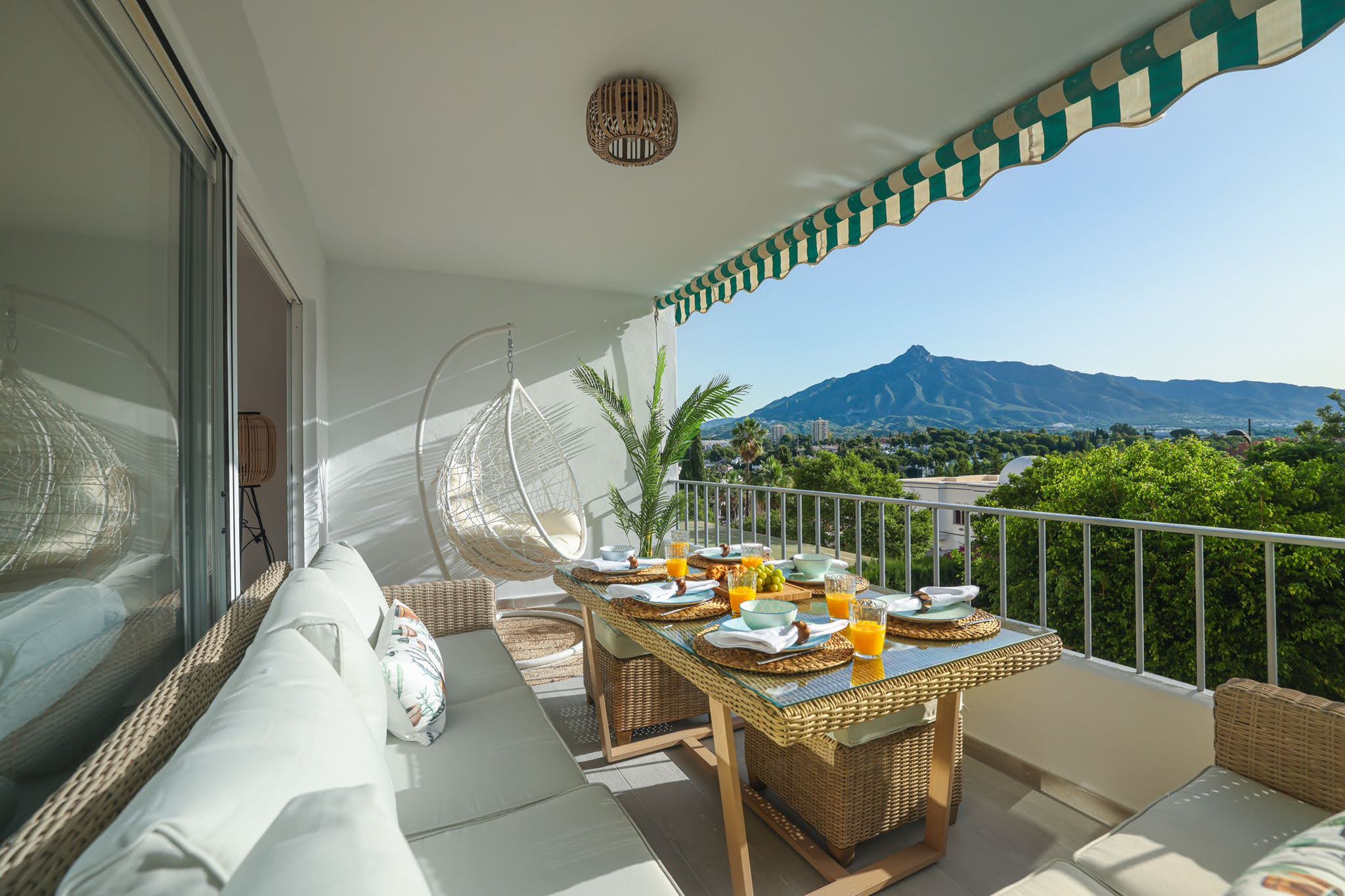 Gran apartamento completamente renovado con acabados de calidad en el corazón de Nueva Andalucia. A pocos minutos a pie de la playa y de Puerto Banús, y rodeado de todo tipo de comercios.