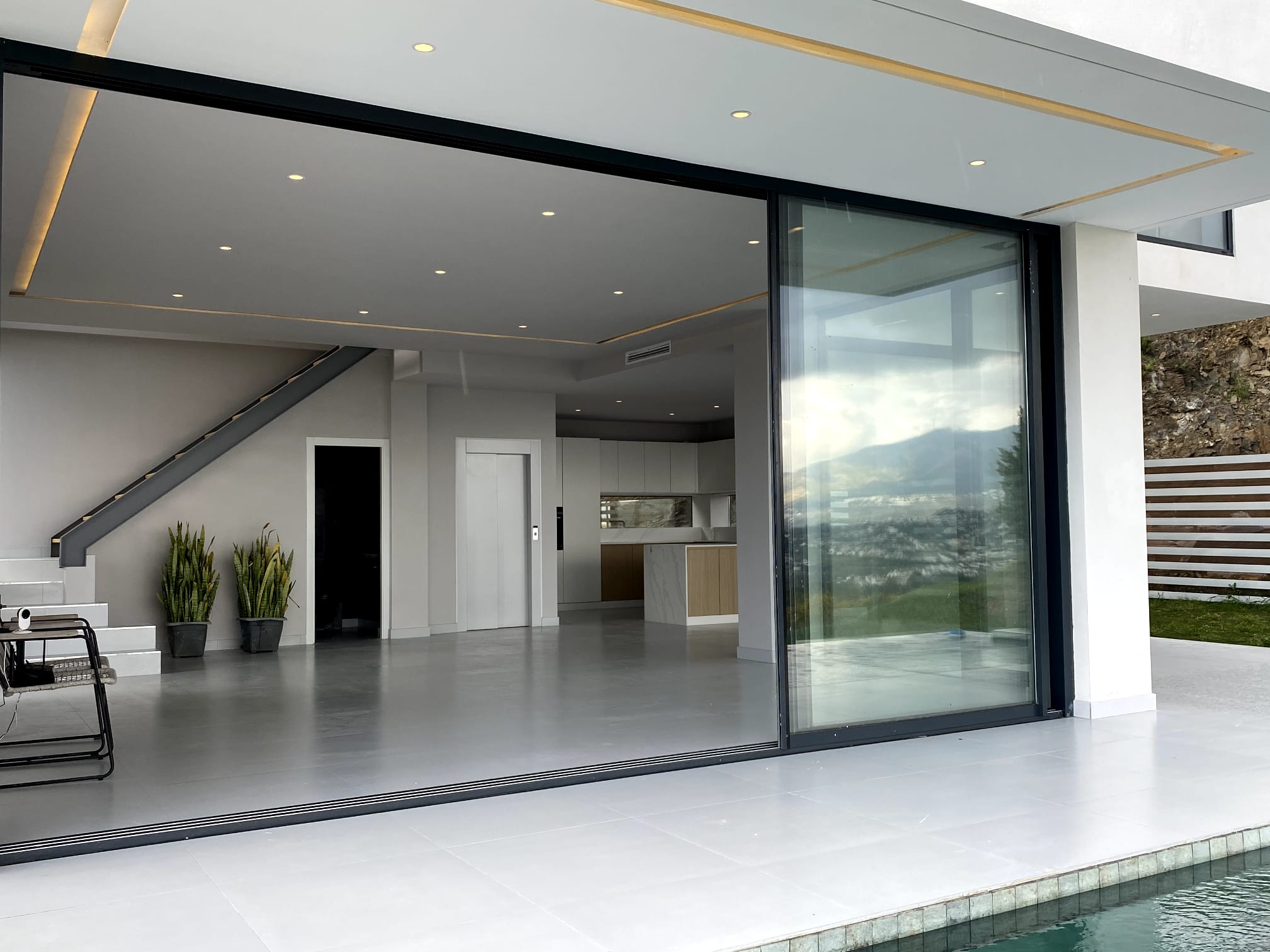 Dispone de ascensor para 6 personas, cocina totalmente equipada con electrodomésticos SIEMENS y lacada en blanco (también armarios interiores lacados), sistema de aerotermia DAIKIN (control por zonas, termostato independiente en cada habitación, integrado en domótica y control por voz), suelo radiante, riego en jardín por goteo, iluminación ambiental indirecta, iluminación inteligente, baños de corian, sótano con roca natural entrando a la habitación y un sistema de cerramiento que es respetuoso con el medio ambiente y 20 veces más eficiente en cuanto al ruido y la temperatura.