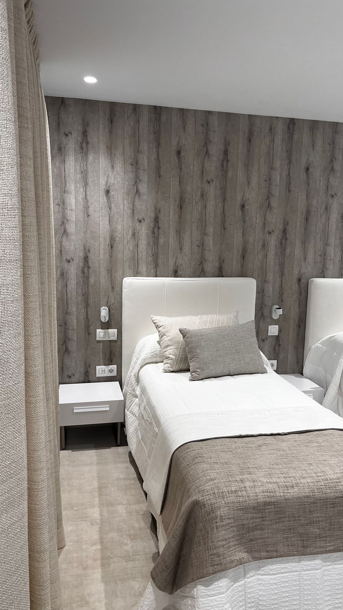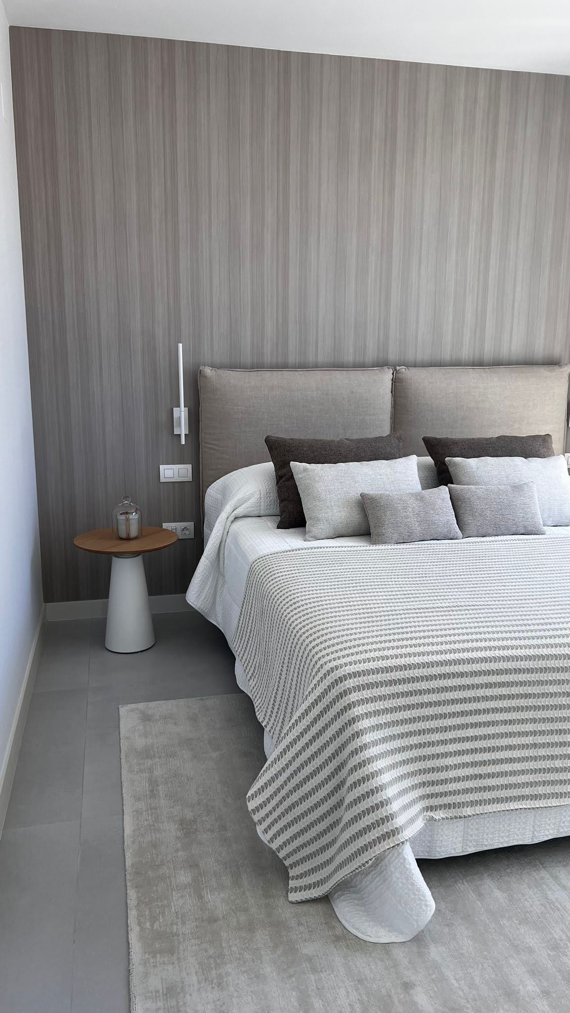 La planta principal consta de un hall de entrada, aseo de invitados, tres dormitorios en suite, cocina totalmente equipada con electrodomésticos y amueblada abierta al salón-comedor desde el que se accede al jardín y piscina privada.