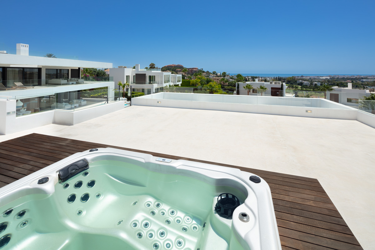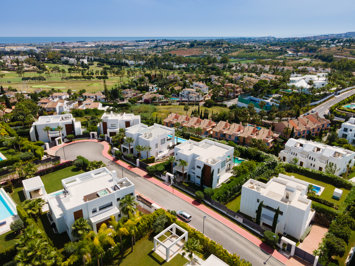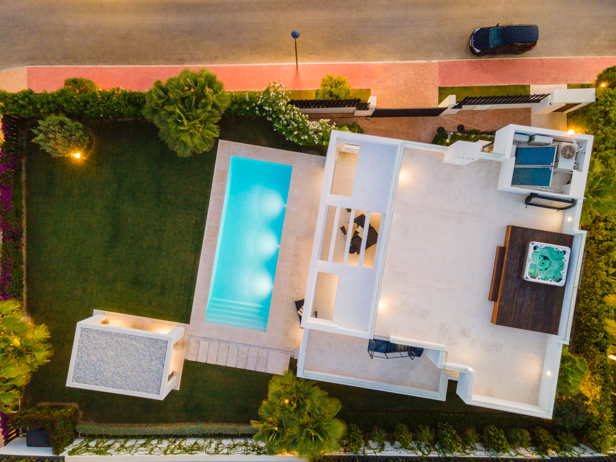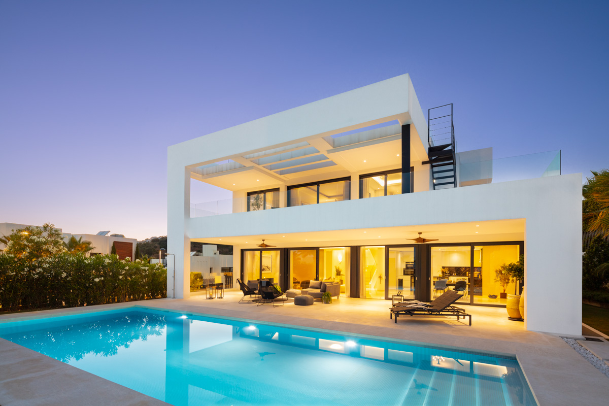 Villa contemporánea de alta calidad situada en pleno corazón de Nueva Andalucía, ubicada en una zona privada y segura, a poca distancia de los campos de golf más prestigiosos  de Marbella.